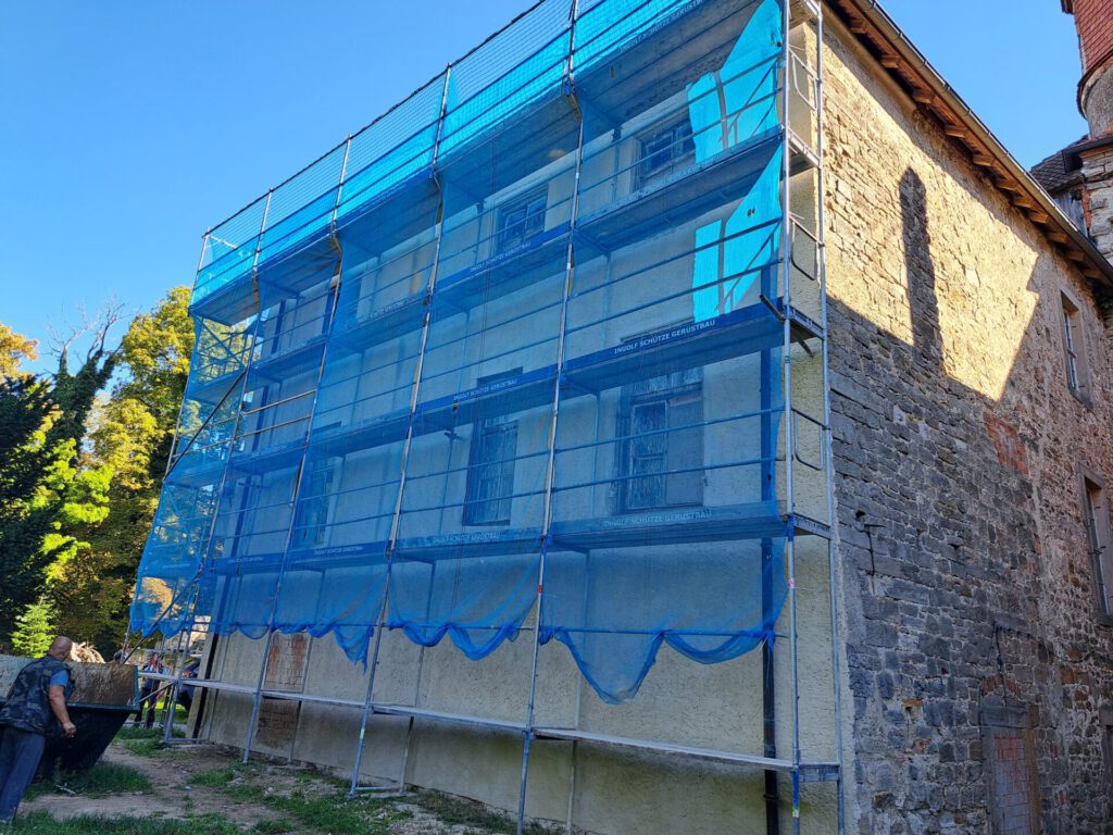August 2025 ✨ Die Arbeiten am Schloss Steinburg schreiten sichtbar voran. Eine Fassade wurde inzwischen vollständig nach historischem Vorbild verputzt – angelehnt an die Originalgestaltung aus dem letzten Jahrhundert. Das Ergebnis: Anstrich als Sumpfkalkanstrich nach Vorgaben Restaurator.